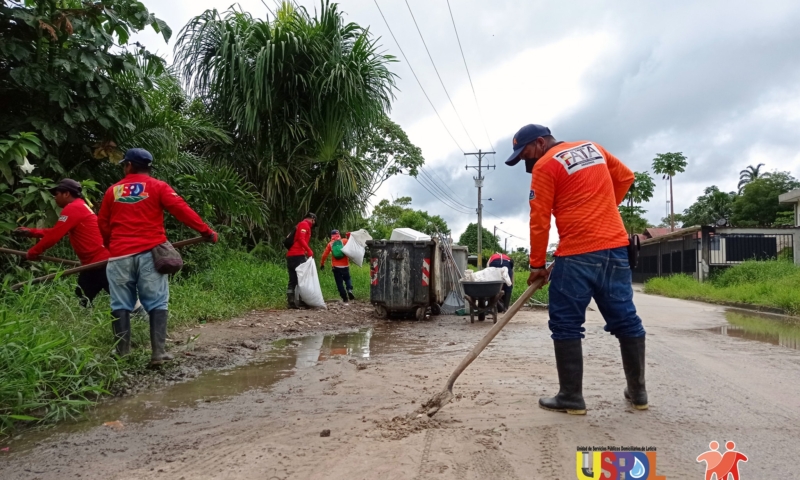 En una jornada de limpieza con nuestro equipo de trabajo, la #USPDL y la #FundaciónFATA realizan jornada de desinfección a contenedores, además, trabajo de poda de algunos sectores del barrio Costa Rica.